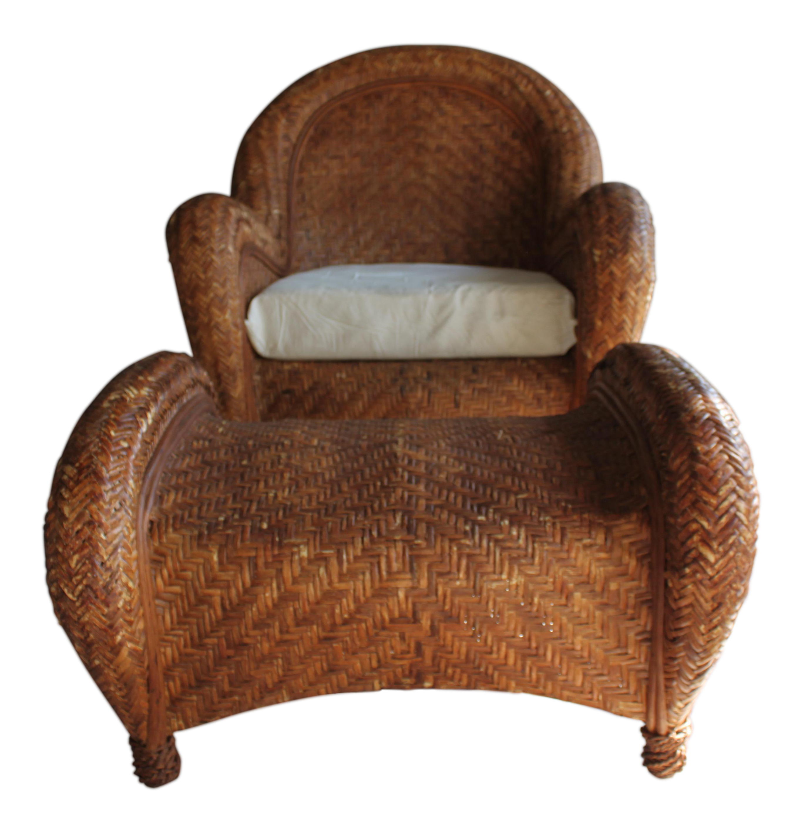 Pottery Barn Malabar Woven Wicker Rattan Lounge Chair Chairish