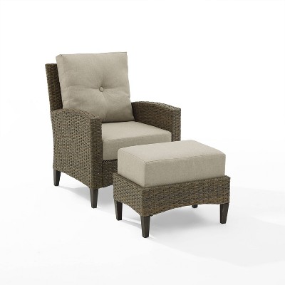 Rockport 2pc Outdoor Wicker Arm Chair Ottoman Oatmeal Light Brown Crosley Target
